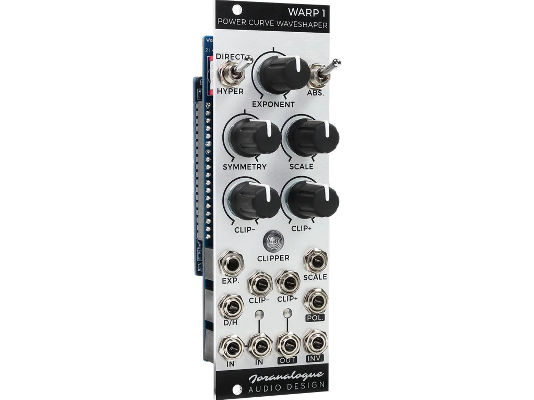 Warp 1 is a new breed of analogue waveshaper. Rather than being based on the inherent properties of transistors and diodes, it precisely implements a mathematical relationship between input and output, governed by a variable power function.
